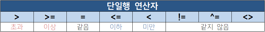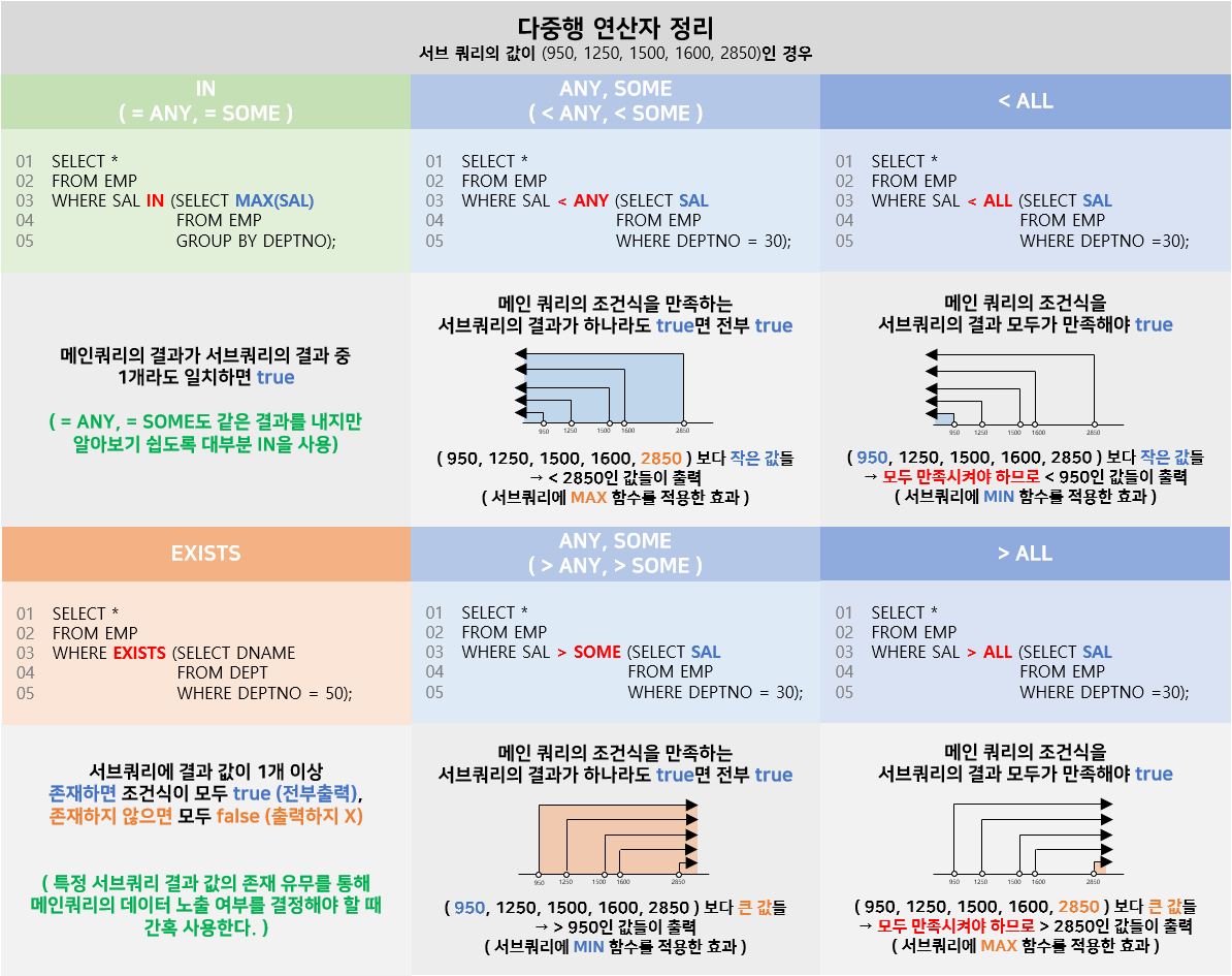 | 다중행 연산자 | 설 명 |