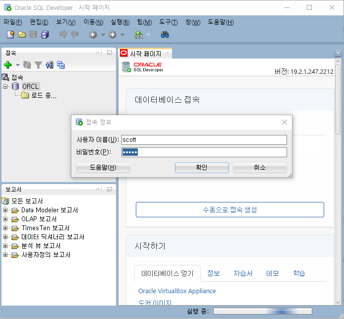 예제는 Oracle Database에서 기본으로 제공되는 SCOTT계정 데이터로 진행됩니다.