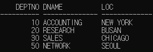 -- 2) SQLPlus 에서 DEPT_TCL 테이블 조회