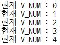 조건인 V_NUM 이 4 보다 작을 동안( 0 ~ 3 ) 반복문이 실행되는 것을 확인할 수 있다.