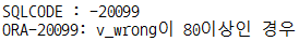 RAISE_APPLICATION_ERROR(-20099, 'v_wrong이 80이상인 경우');