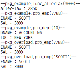 DBMS_OUTPUT.PUT_LINE('after-tax : ' || pkg_example.func_aftertax(3000));