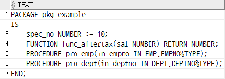 -- 패키지 본문 생성 예시(pkg_example)