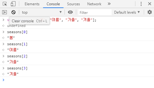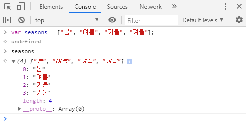 var seasons = ["봄", "여름", "가을", "겨울"];