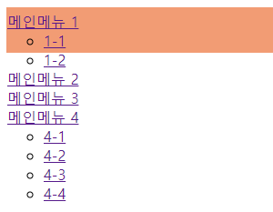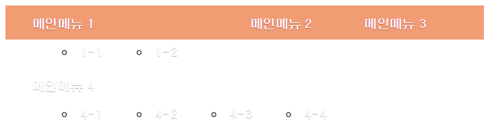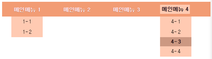 이제 메인 메뉴에 마우스 포인터를 올렸을 때 서브메뉴가 나타나도록 해야 합니다.