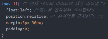 #nav 뒤에 #nav li를 추가해서 메인 메뉴의 리스트에 대한 스타일을 설정합니다.