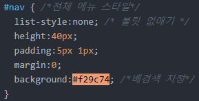 메인 메뉴 스타일을 지정하기 위해서 <head>안에 #nav로 스타일을 지정합니다.