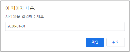 var inputStartDay = prompt("시작일을 입력해주세요.", "2020-01-01"); //입력창 생성