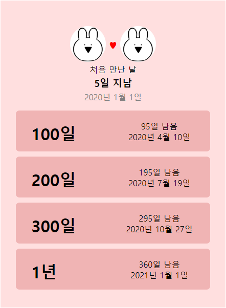 <div id="dday365"></div> <!-- 1주년 d-day를 츨력할 공간 -->