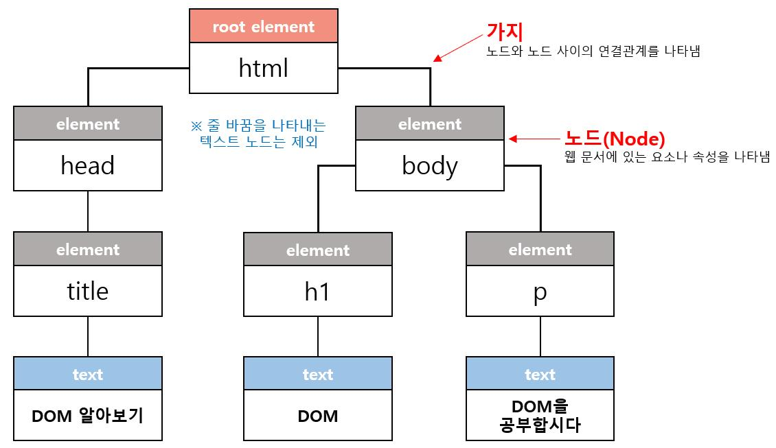 - 노드(node) : 웹 문서에 있는 요소나 속성 등을 나타냄