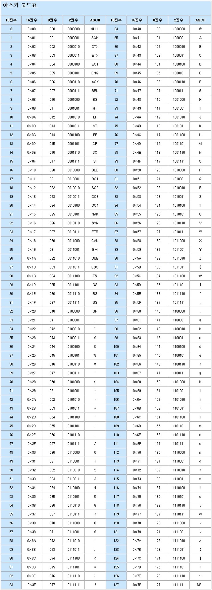 아스키(ASCII) 코드 표