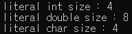 리터럴 상수의 크기를 확인하는 예제이다.