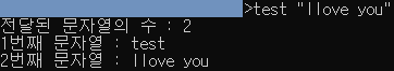 ``"``로 문자열을 묶으면 공백을 포함하는 문자열을 생성해서 ``main``함수의 인자로 전달하는 것이 가능하다.