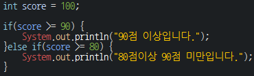else if 문도 조건만 보면 맞아 보이지만 사실은 if 문의 조건식이 참이 아닌 것들 중에 score 가 80 이상인 조건이므로 (80 <= score) && (score < 90)과 같은 의미이다.