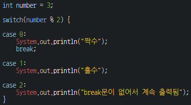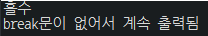 switch 문에서 조건문을 빠져나오려면 break 문이 있어야 한다는 것을 알 수 있다.