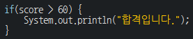 score 의 값이 60 보다 크다면 "합격입니다." 가 출력되고,