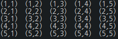 위의 반복문은 i 가 행이 되고 j 가 열이 되어 5x5 행렬의 행과 열을 출력한다.