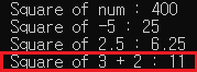 printf("Square of -5 : %d \n", SQUARE(-5));