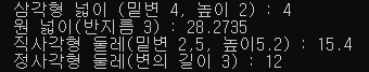 printf("삼각형 넓이 (밑변 4, 높이 2) : %g \n", TriangleArea(4, 2));