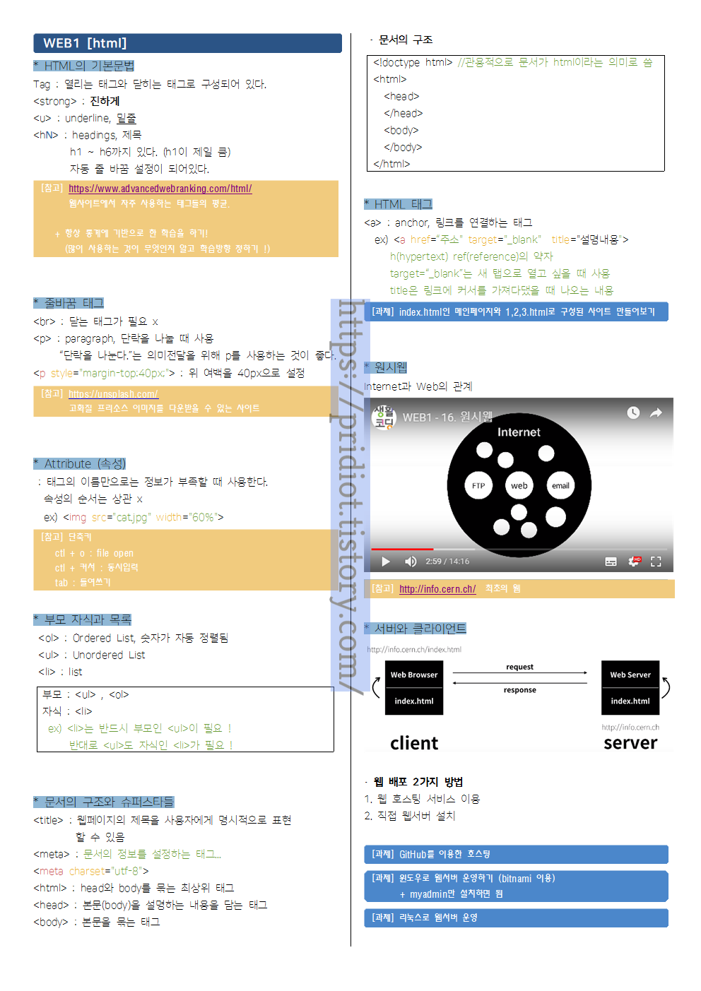 생활코딩 WEBn 시리즈인 WEB1(html) 강의를 듣고 정리한 요약본입니다.