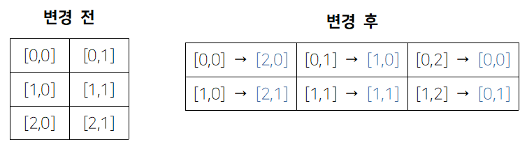 //회전할 배열 선언및 초기화(90도 회전하면 행과 열의 개수가 바뀌므로 개수를 바꿔서 생성한다)