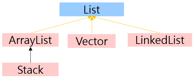 | LinkedList | 연결기반. 데이터의 추가와 삭제에 유리 임의의 요소에 대한 접근성이 좋지 않다. |