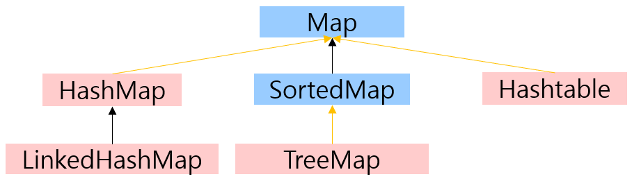 HashMap , TreeMap , Hashtable , LinkedHashMap , SortedMap , Properties 등 |