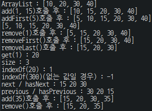 System.out.println("removeFirst()호출 후 : " + numbers);