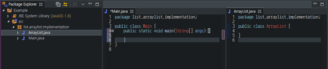 먼저 적절한 이름의 Pakage( list.arraylist.implementtion )를 만들어주고
