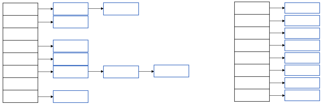 하지만 링크드 리스트는 검색에 불리한 자료구조이기 때문에 링크드 리스트의 크기가 커질수록 검색속도가 떨어지게 된다. 배열은 배열의 크기가 커져도, 원하는 요소가 몇 번째에 있는 지만 알면 아래의 공식에 의해서 빠르게 원하는 값을 찾을 수 있다. 그래서 하나의 배열에 많은 데이터가 저장되어 있는 형태보다 하나의 배열에 하나의 데이터만 저장되어 있는 형태가 더 빠른 검색 결과를 얻을 수 있다. 하나의 링크드 리스트에 최소한의 데이터만 저장되려면, 저장될 데이터의 크기를 고려해서 HashMap 의 크기를 적절하게 지정해주어야 하고, 해시함수가 서로 다른 키에 대해서 중복된 해시 코드의 반환을 최소화해야 한다. 그래야 빠른 검색시간을 얻을 수 있다.