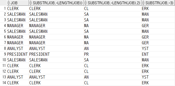 SUBSTR(JOB, -LENGTH(JOB), 2),