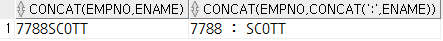 CONCAT(EMPNO, CONCAT(' : ', ENAME))